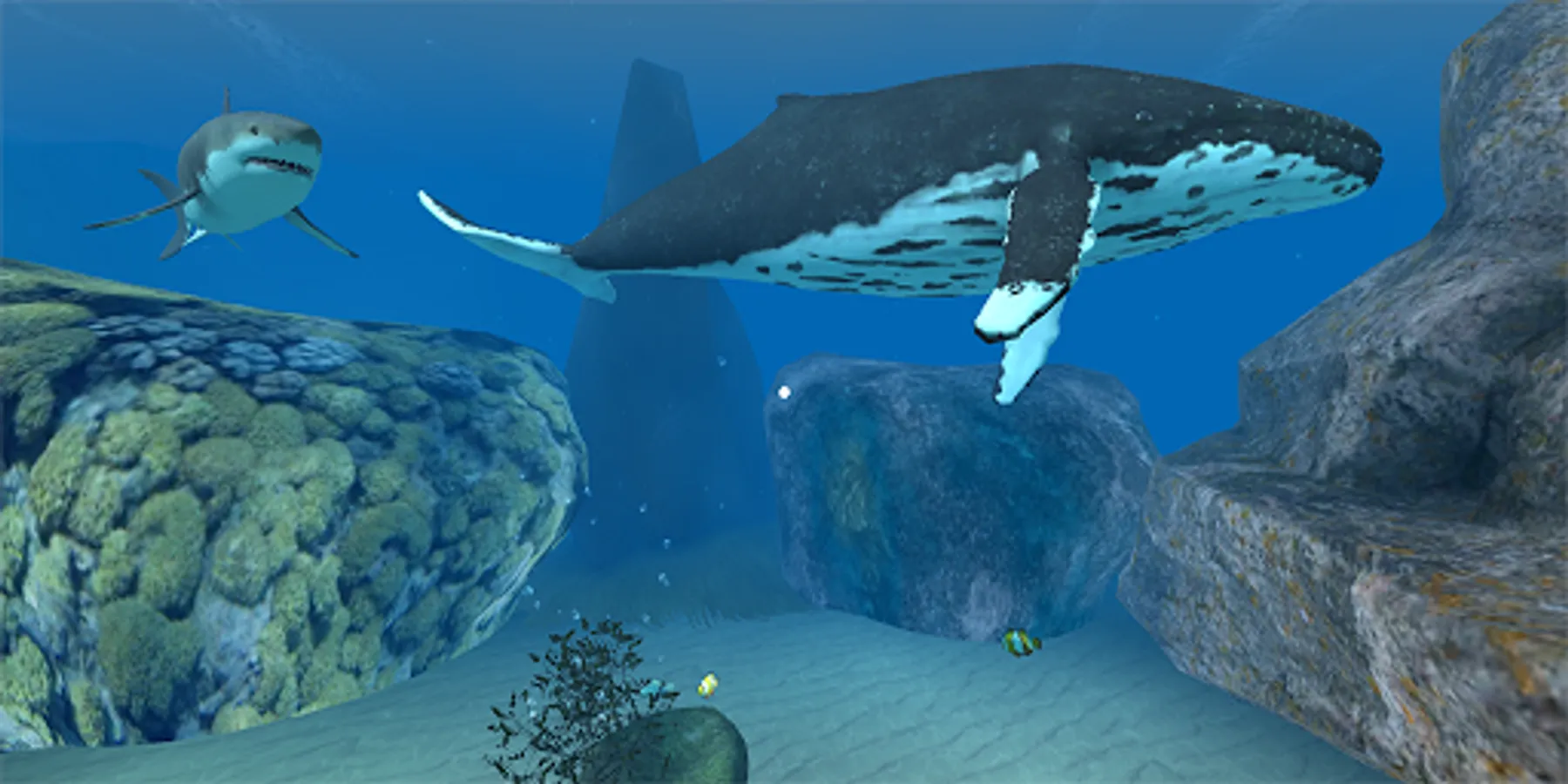 Lots of small animated fishes. How it feels to have Sharks and Whales around you. So Get ready for being a fish and feel the real underwater life.