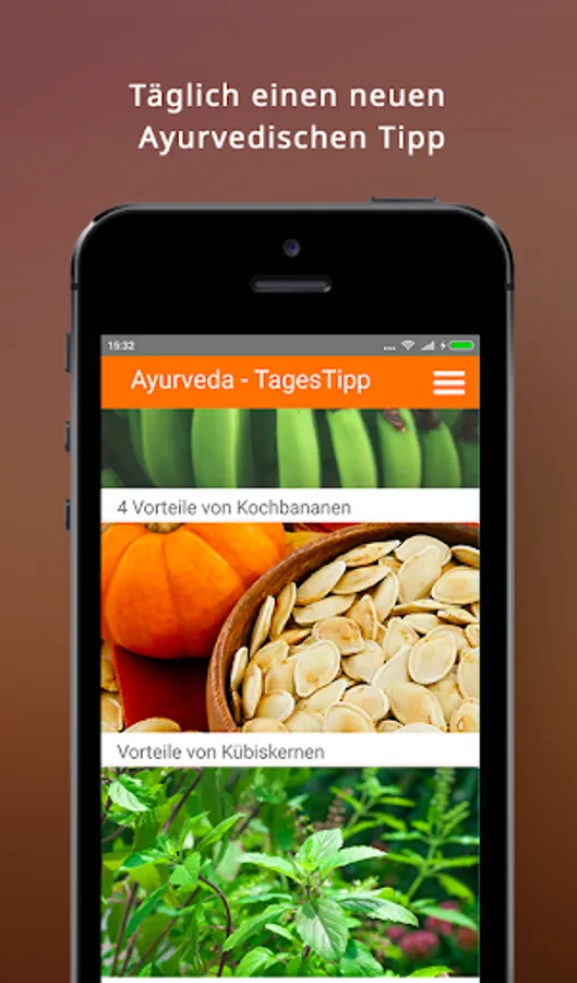 In dieser App bekommen Sie täglich ayurvedische tipps , diese können Sie zu Ihren Favoriten hinzufügen um es offline zu lesen oder mit Ihren freunden auf Social Media teilen.