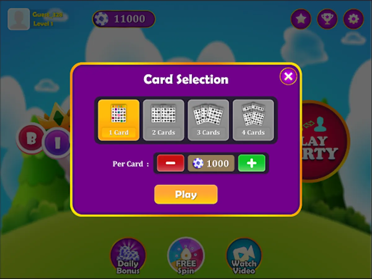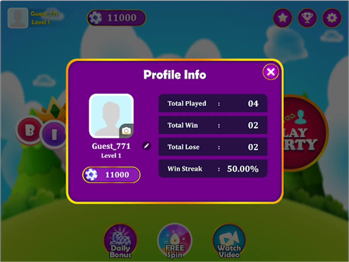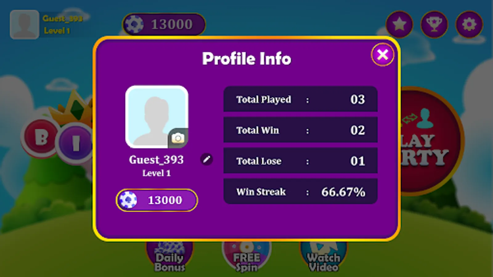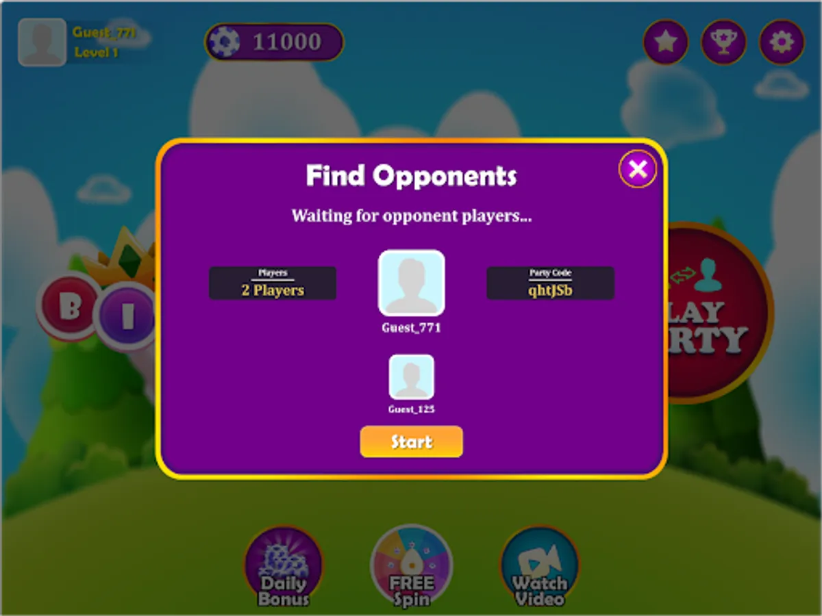 You can create your own private party and invite friends to join the party by sharing party code to play online bingo games. You can create it by pressing “Create” button, else enter party code to join existing party.