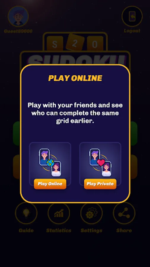 3) Play Private :- Play with your friends and family by creating and joining private room.
