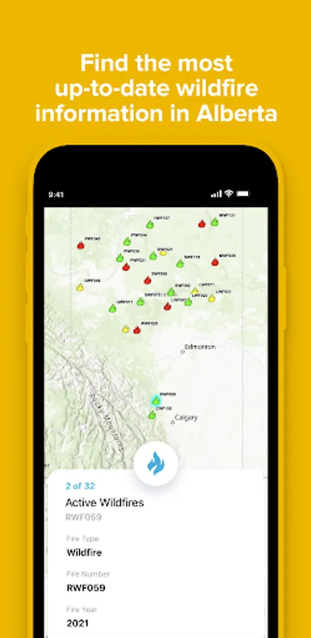 • Easy access to Alberta’s wildfire map with up-to-date wildfire information.
