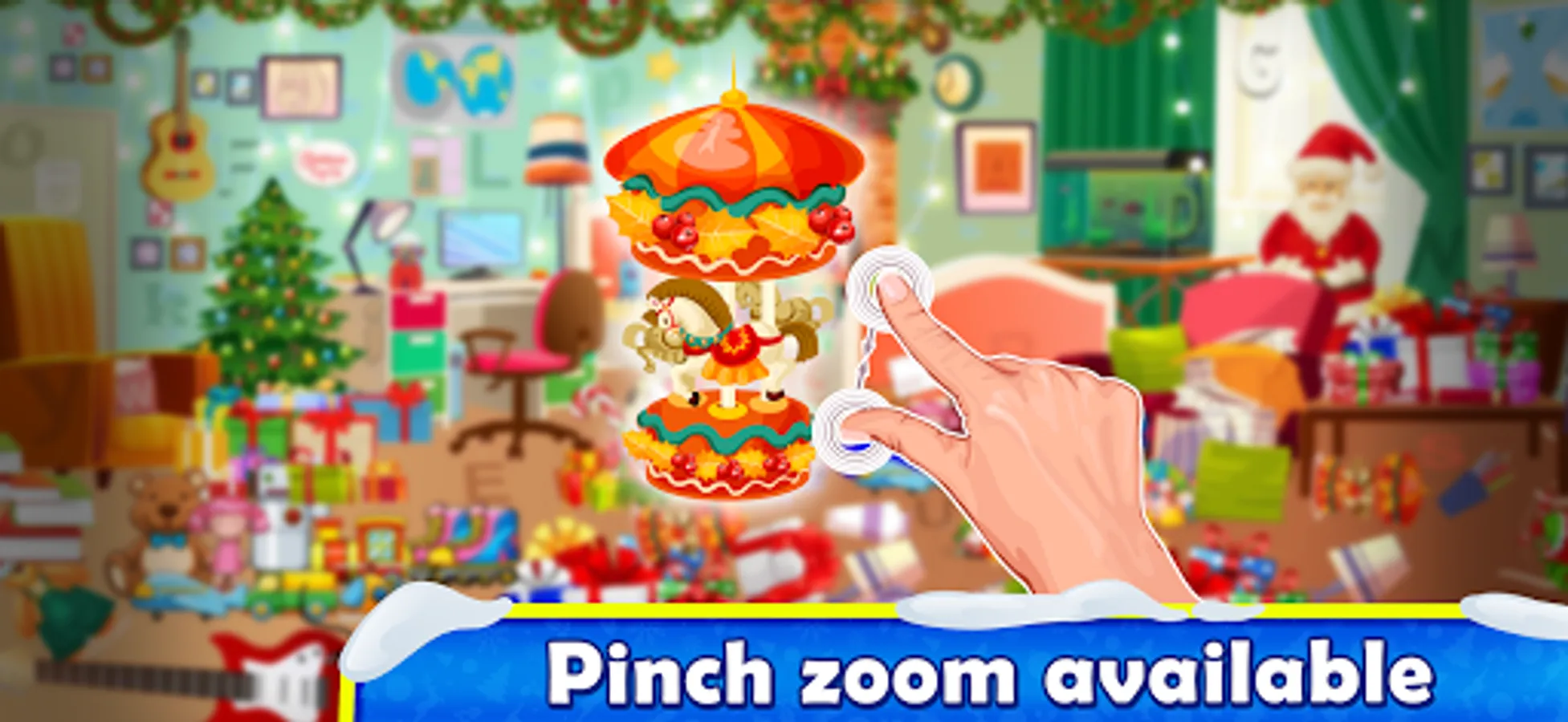Santa Claus is coming to town and he is bringing you the most beautiful gift ever – Christmas Hidden Objects game! Become one of the Santa's helpers and find your way to the Christmas Eve by spotting objects in a messy room!