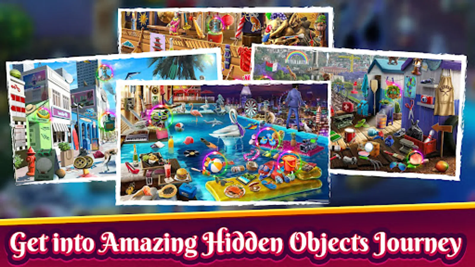 - Many stunning scenes across lots of challenging hidden object games levels