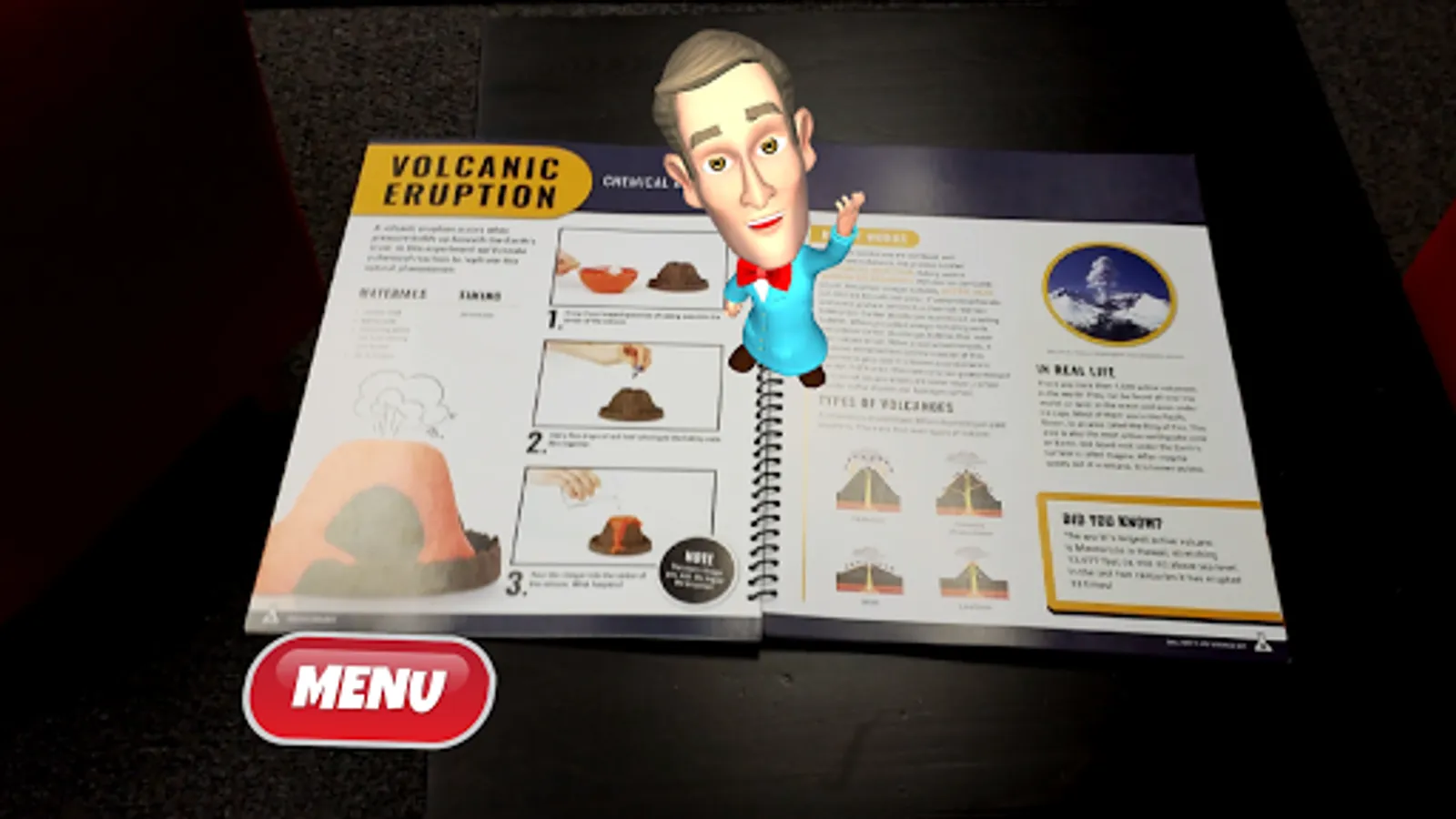 Pour activer les expériences, téléchargez simplement l’application et orientez votre appareil mobile vers le livre inclus dans le kit scientifique de RV de Bill Nye et regardez Bill prendre vie !
