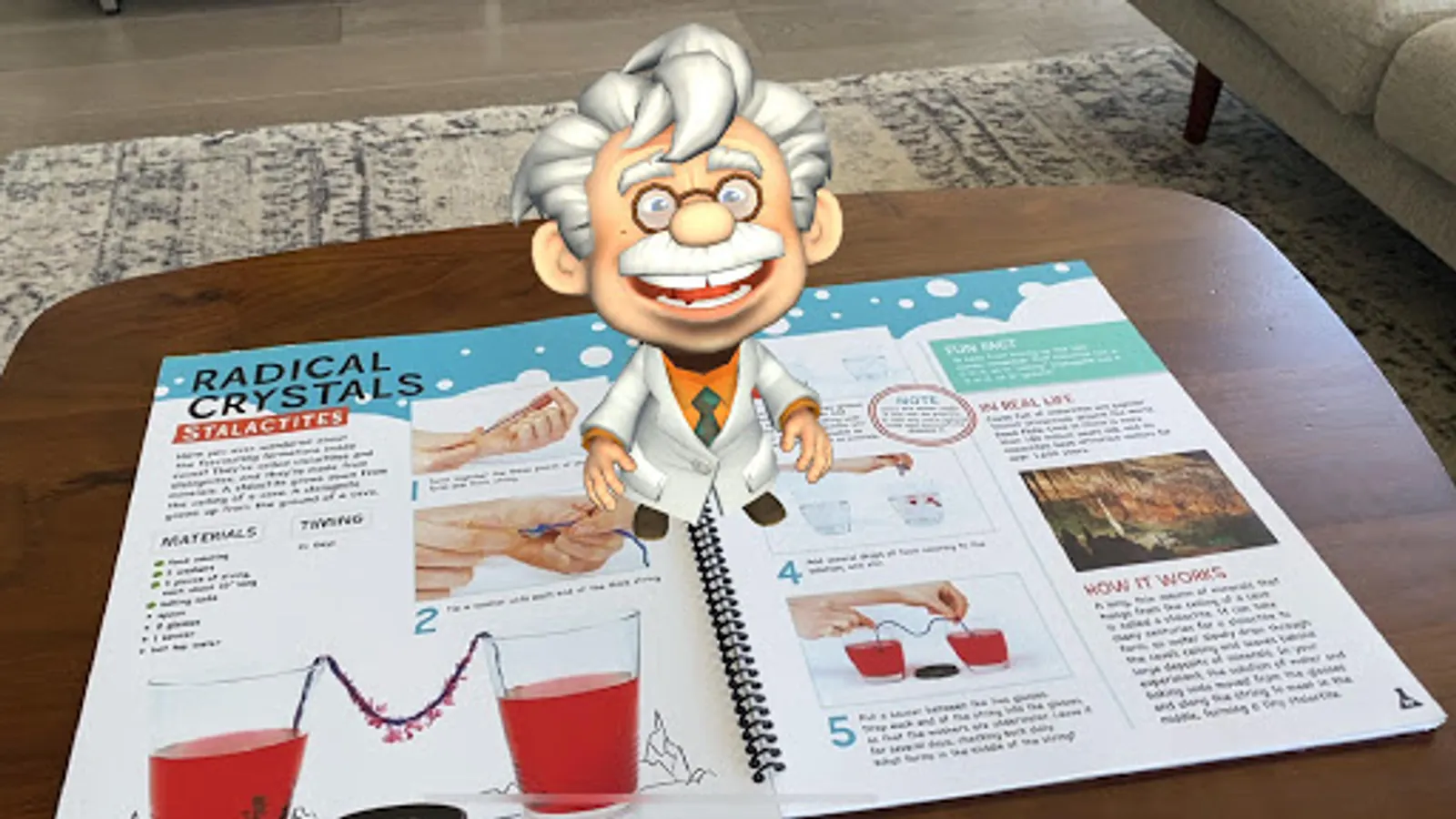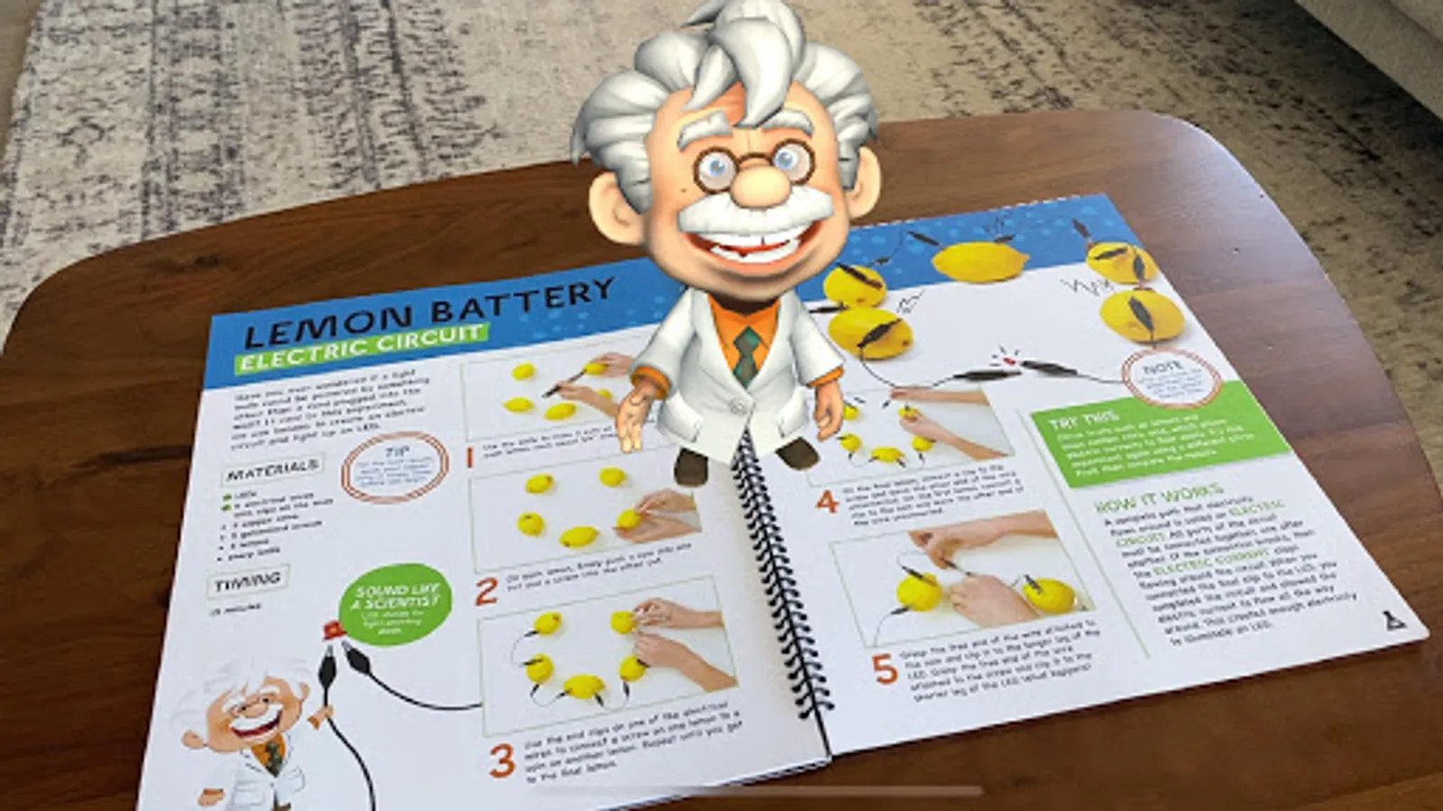 Dive into Professor Maxwell's virtual lab to explore the wonders of science through 25 fun experiments that come alive in augmented and virtual reality! Learn key scientific principles including chemical reactions, sound waves and acidity with integrated AR and VR. Then get hands on with favorite experiments including erupting a volcano, using lemons to light up an LED, making gooey slime and more, all in Professor Maxwell's VR Science Lab! To activate the experiences, simply download the app and hold your phone over the book included in the kit to see Professor Maxwell come to life!