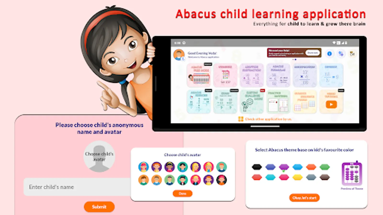 Abacus - Child learning app is suitable for children's Age 5 and up, who know about numbers and some basic addition and subtraction.