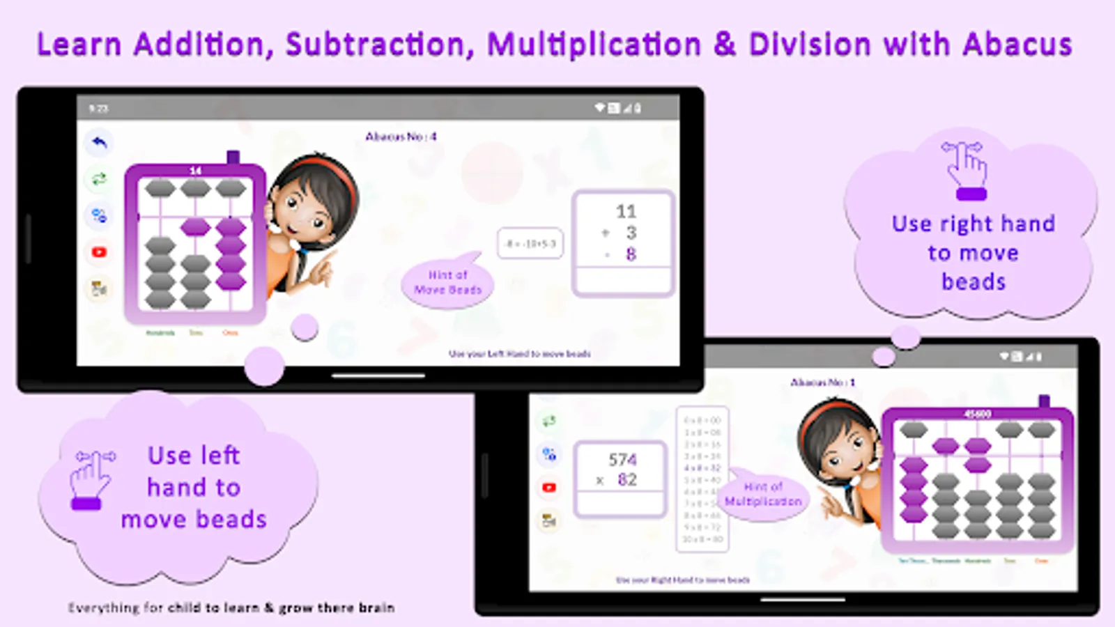 Abacus will help your children learning about Abacus, Numbers, Addition, Subtraction, Multiplication, Division.