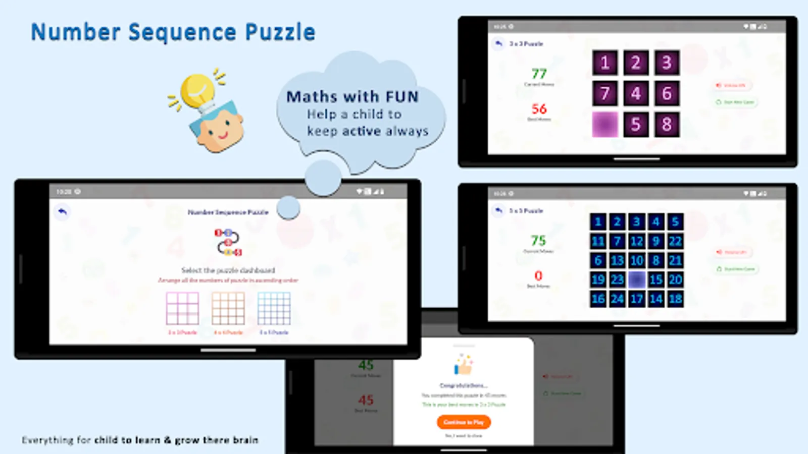 - Number sequence Puzzle : Arrange all the number of puzzle in sequence of ascending order. It's make your child actively always.