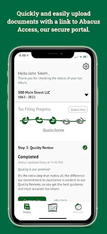 Conveniently check your return status from anywhere on your smartphone or tablet. You’ll be able to track the status of your return in real-time, with easy access links to upload your documents, make payments online to Abacus CPAs, LLC and the IRS, review resources to help answer your questions, and communicate with the Abacus team!
