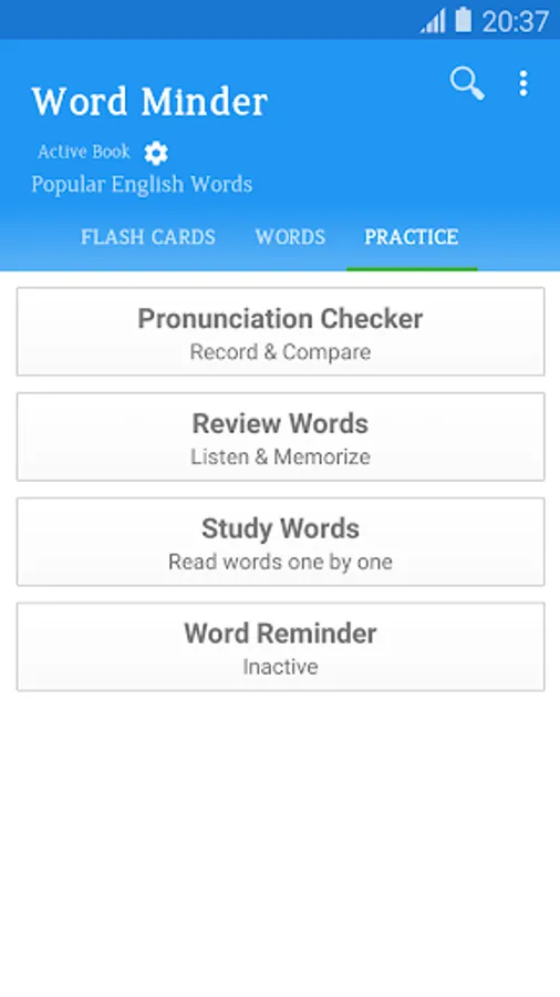Use Word Minder to memorize many words easily and to improve your pronunciation.