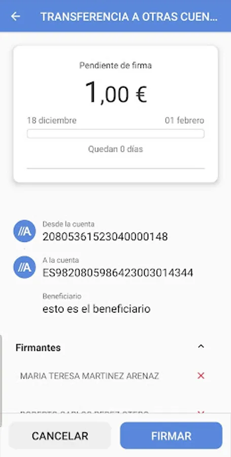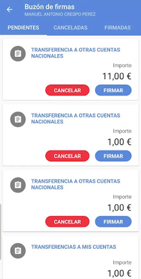 -If you have several contracts of Online Banking for companies linked to your user passwords, you will be able to check and sign any pending operations for each one of them. Remember that operations that have not been signed will expire after 45 days.