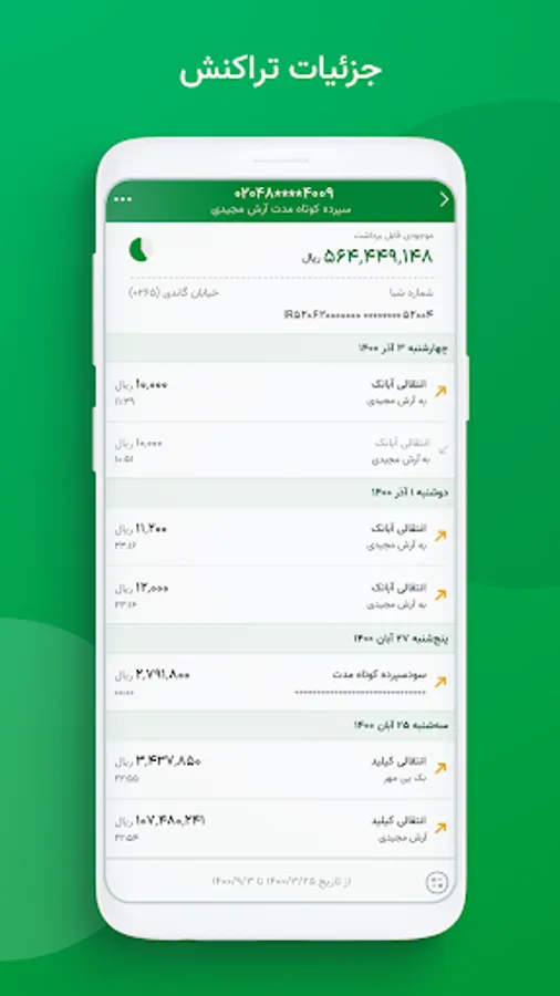 • تراکنشها بر اساس تاریخ، در آبانک گروهبندی میشوند.
