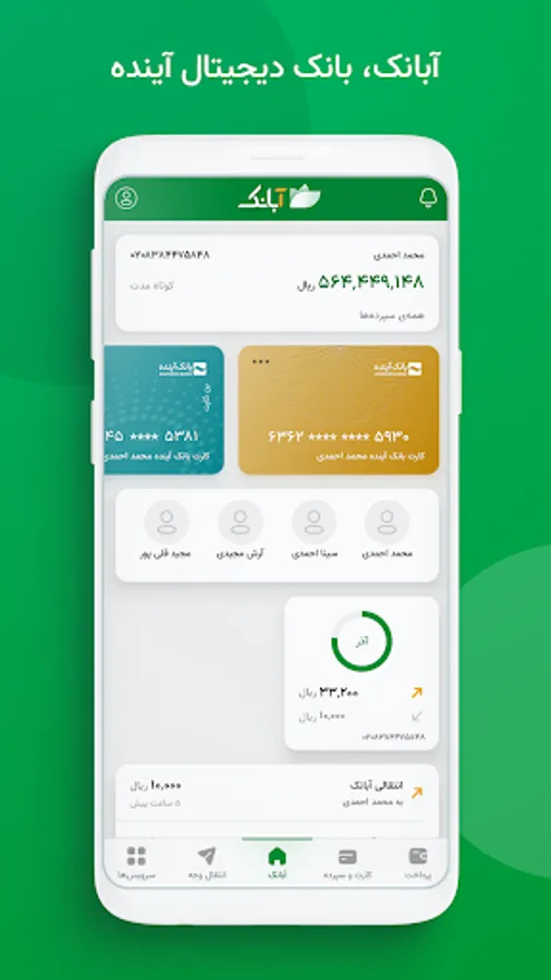 • آگاهی از موجودی و وضعیت سپردهها، کارتهای بانکی و تراکنشها در آبانک فراهم است.