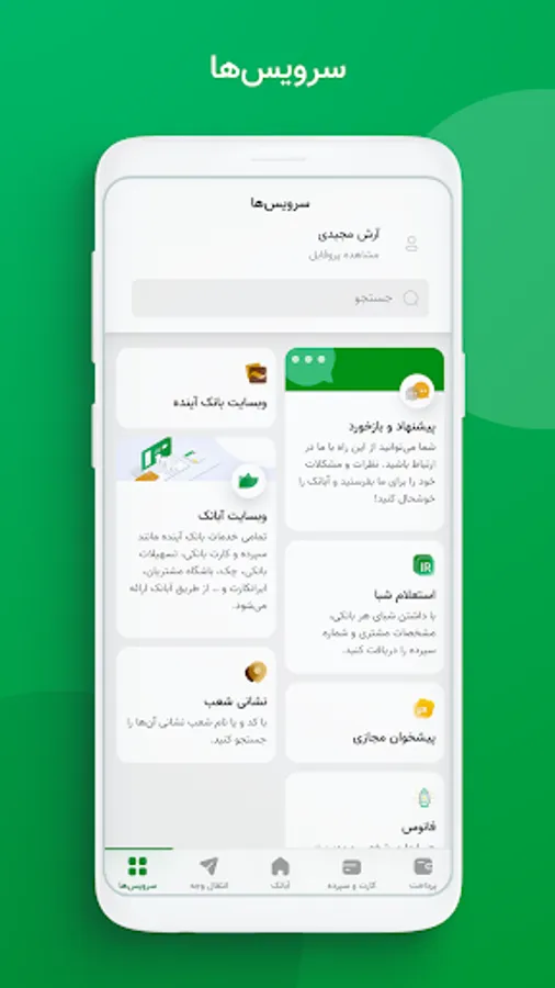 • امکان جستجوی تمامی خدمات در آبانک وجود دارد.