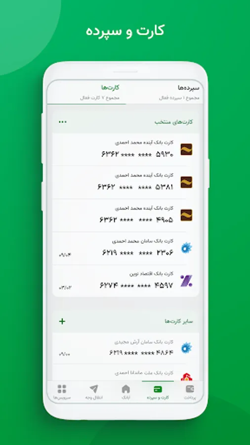 • فلیتر هوشمند کارتها و سپردهها در آبانک امکانپذیر است.