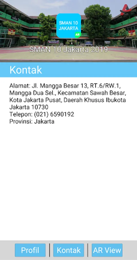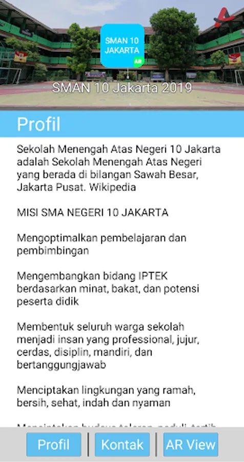 This application contains a profile of SMAN 10 Jakarta. In addition to displaying the Institute's basic profile, this application is also equipped with Augmented Reality which can be used with the Annual Book of Students.