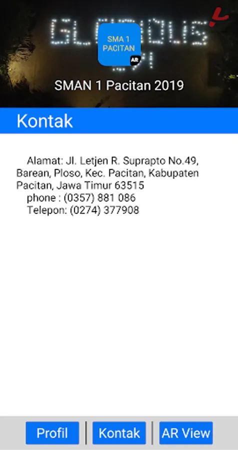 This application contains a profile of SMAN 1 Pacitan. In addition to displaying the Institute's basic profile, this application is also equipped with Augmented Reality which can be used with the Annual Book of Students.