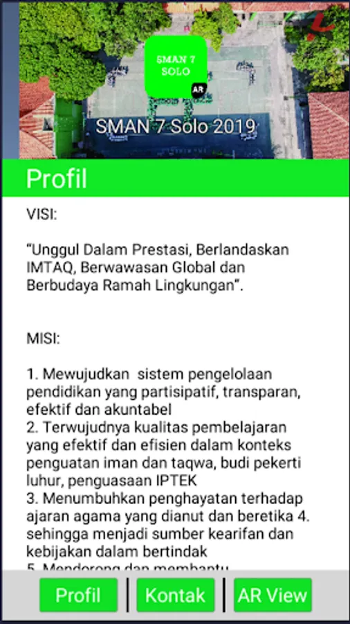 This application contains a profile of the SMAN 7 Solo Force. In addition to displaying the Institute's basic profile, this application is also equipped with Augmented Reality which can be used with the Annual Book of Students.