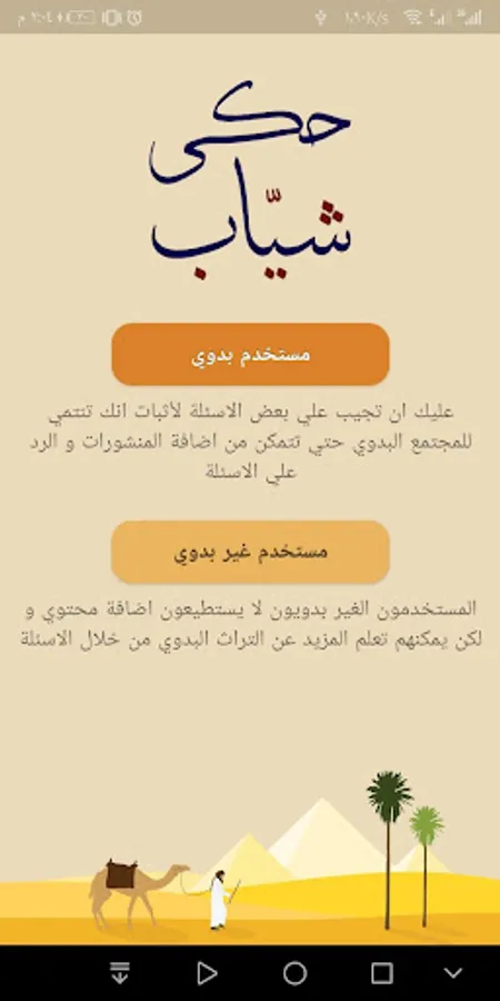 An application that helps to identify Bedouin culture and preserve Bedouin heritage, through the publication of Bedouins important information about Bedouin culture, along with a platform for questions that enables non-Bedouins to learn more about interesting information in various areas about Bedouin life.