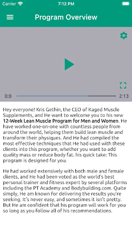 Hey everyone! Kris Gethin, CEO of Kaged Muscle Supplements, He wants to welcome you to his new 12-Week Lean Muscle Program for Men and Women. He had worked one-on-one with countless people from around the world, helping them build lean muscle and transform their physiques. And He had compiled the most effective techniques that He had used with these clients into this program, whether you want to add quality mass or reduce body fat. His quick take: This program is designed for you.