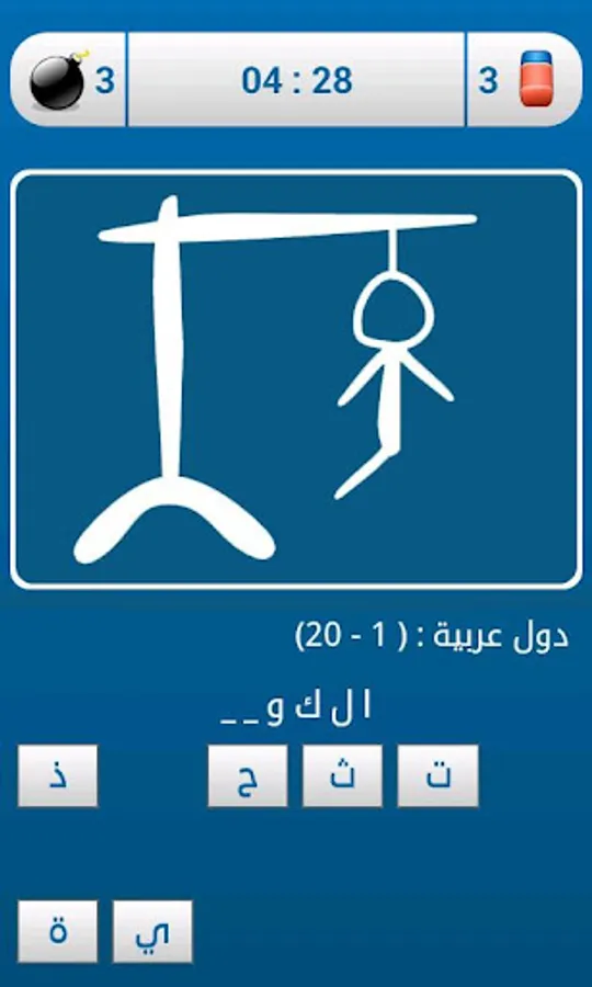 القنبلة : وهي تحذف عدد اربع حروف من ١٨ عشر الحرف حتي تسهل لك الاختيار من الحروف
