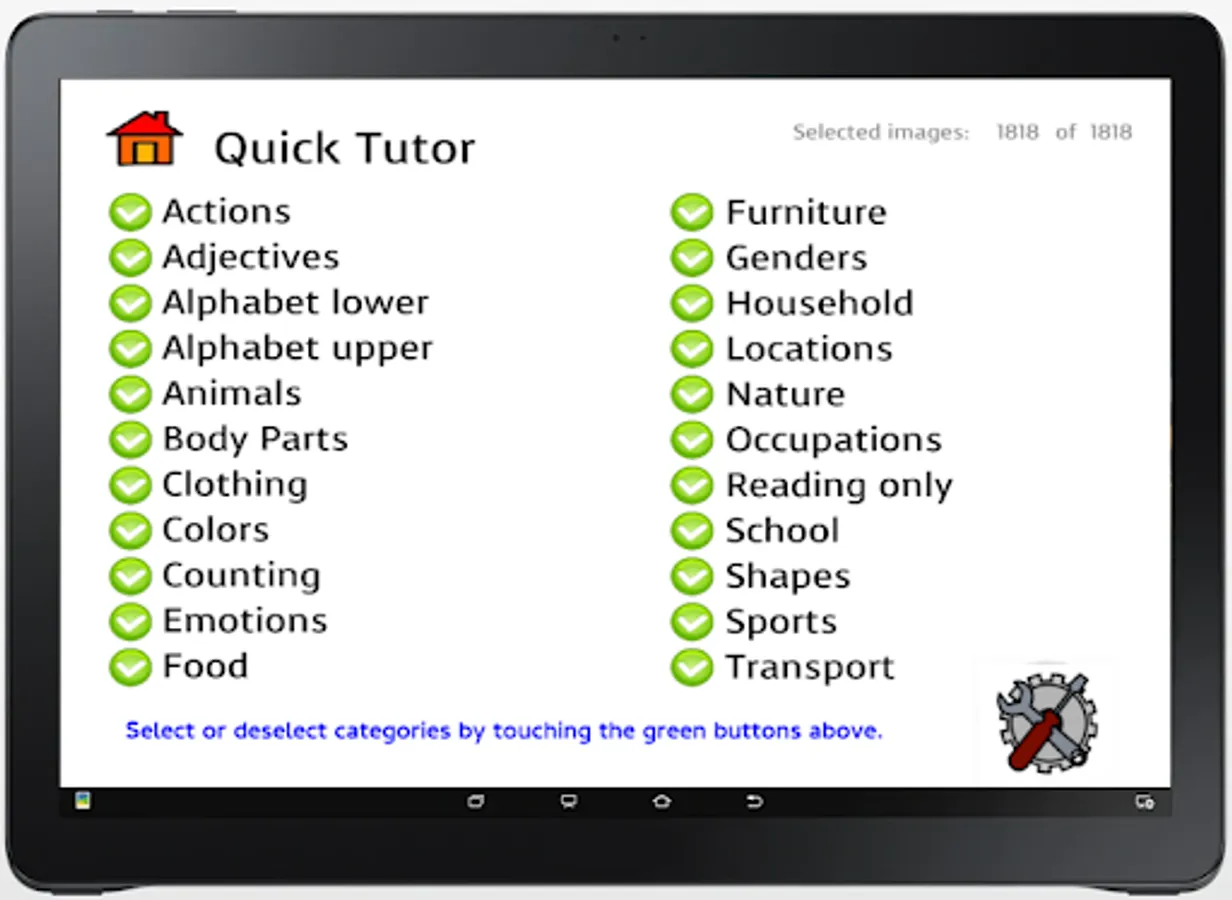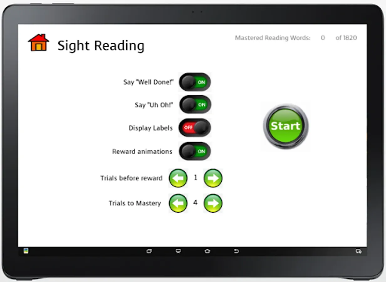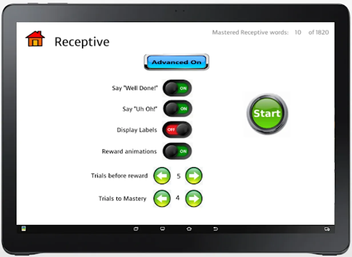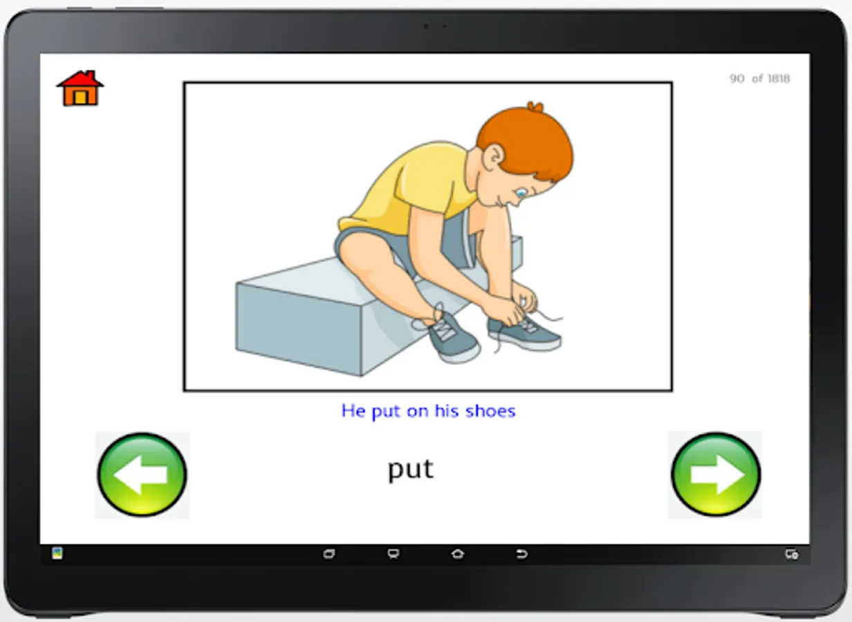 This free to try app teaches nonverbal and verbal kids receptive language i.e to identify images from their images. This is a precursor to speech and language. The app uses the ABA (Applied Behavior Analysis) Discrete Trial Training method and includes lots of animations to reward their progress. You can choose from any or all of 22 categories from Animals and Food items to Actions and Vehicles. The system begins with on image and moves up to five images to challenge the child's receptive language. The are a total of over 1800 words for the child to learn. The words are the first most frequently used words in the English language. This latest version includes a Phonics section and a Label Tutor section as well.