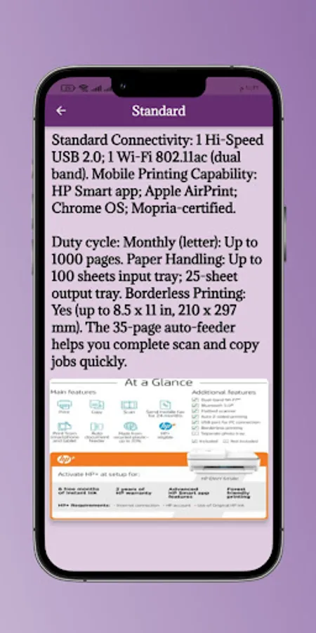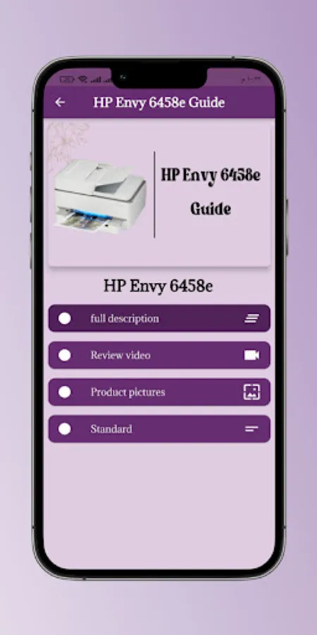 This application provides you with a wealth of information about the HP Envy 6458e app.