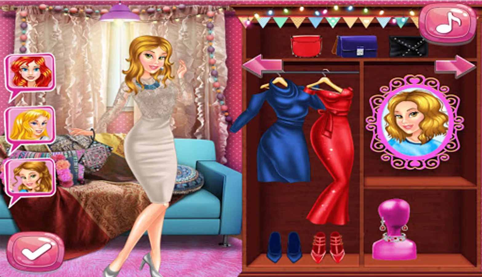 You can create a lot of stylish and trendy outfits for adorable princesses girls and fasionista, new makeover and dress up girls college for high school love story with european and american style dresses and daily fashion.