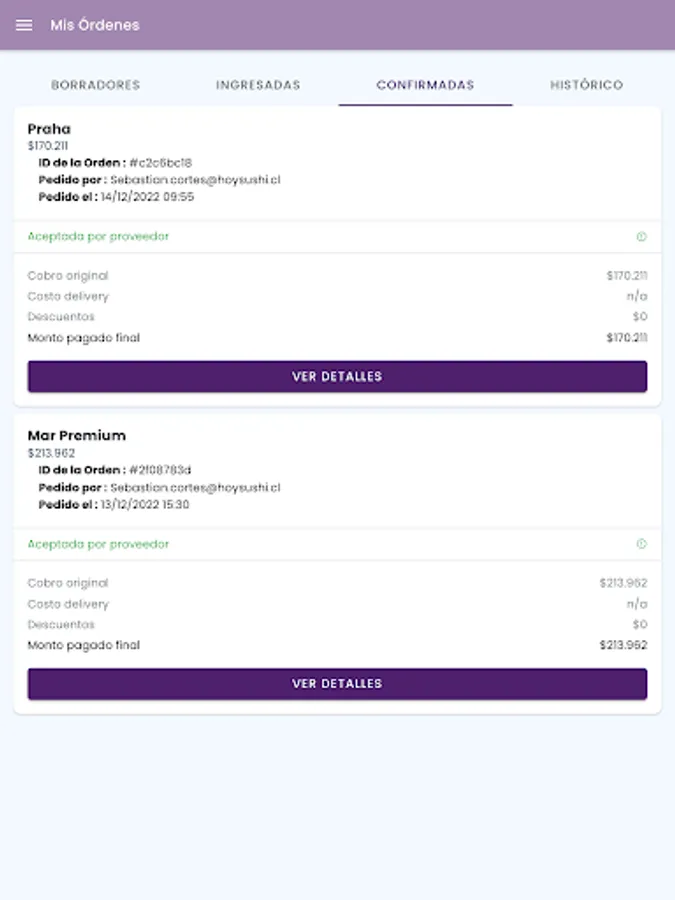 - Manage several restaurants from the same app. Grant access and update your employees' information, check orders and receive status notifications.
