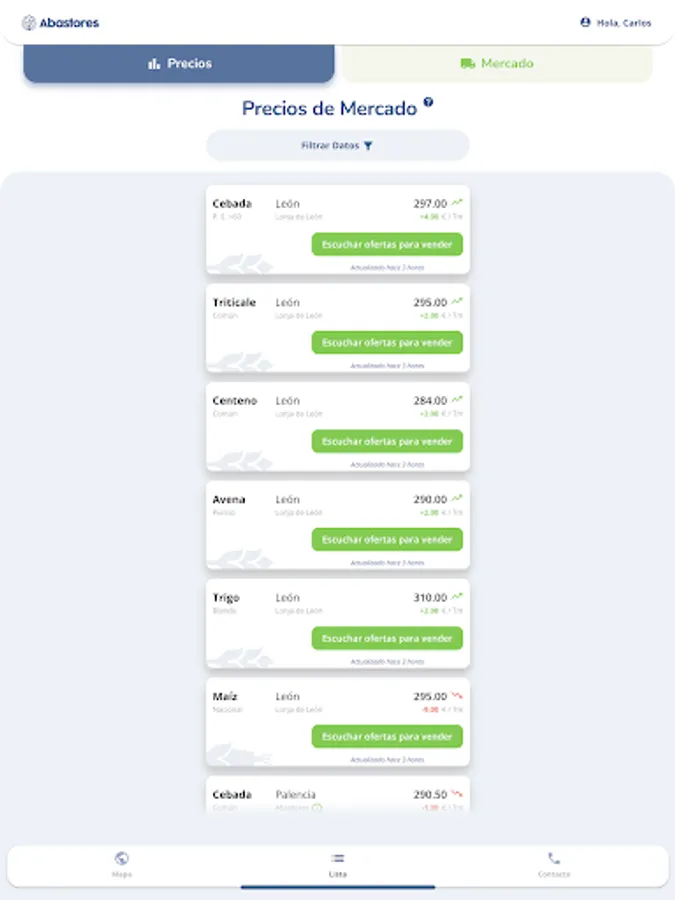 We also have a system for generating purchase and sale interests based on published market prices, which allows farmers to have real purchase offers without any sales commitment.