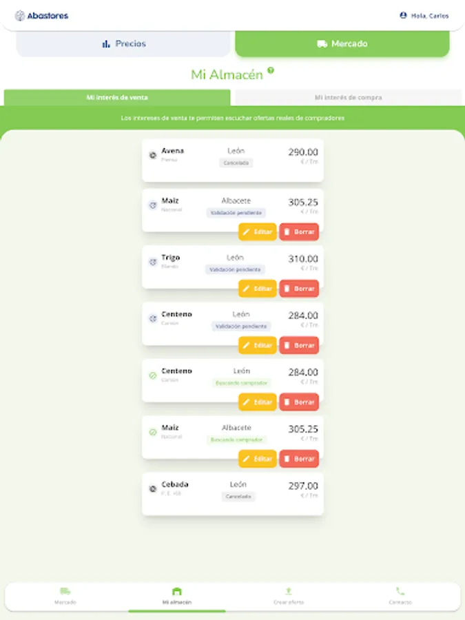 Abastores is the online market for agricultural raw materials. We inform the market impartially based on the operations that farmers close daily with cereal operators and factories.