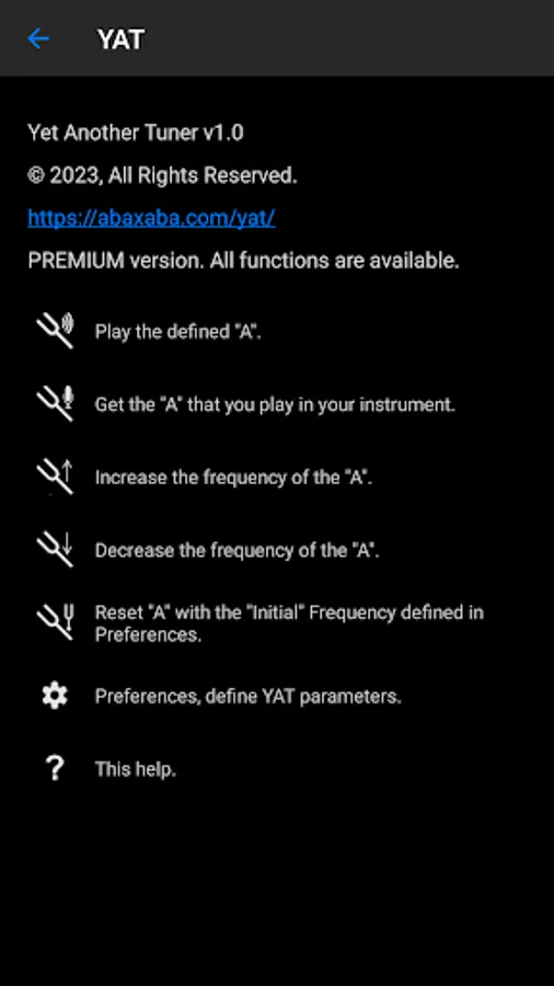 You can configure the desired frequency of the "A" or can play (or sing) it and YAT will adopt it as the "A" frequency.