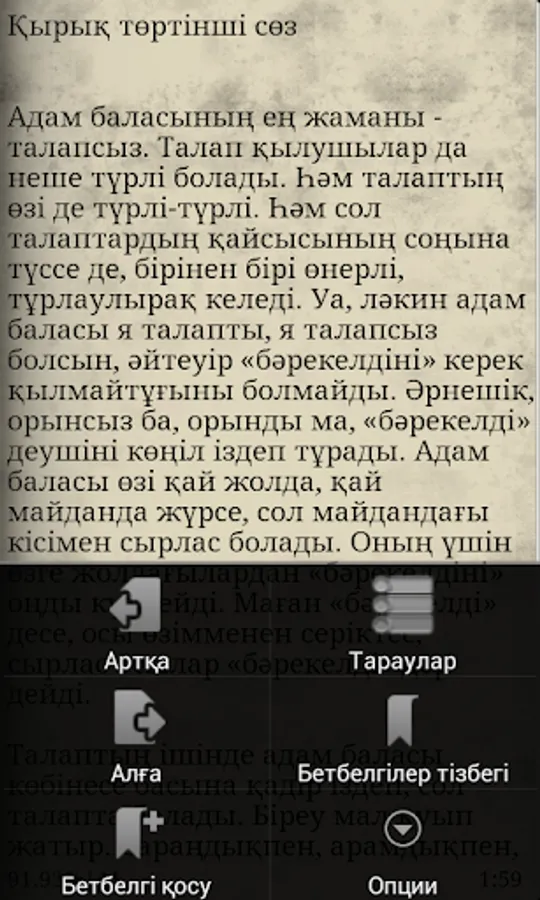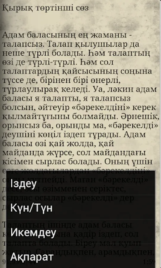 "Words of edification", "Kara soz" or "The Book of Words" (Kazak szz, lit .: Simple word, prose) is the fundamental work of the great Kazakh akyn and enlightener Abai Kunanbayev, which consists of 45 short parables and philosophical treatises. In this prose poem, the problems of national upbringing and ideology, morality and law, the history of Kazakhs are raised.