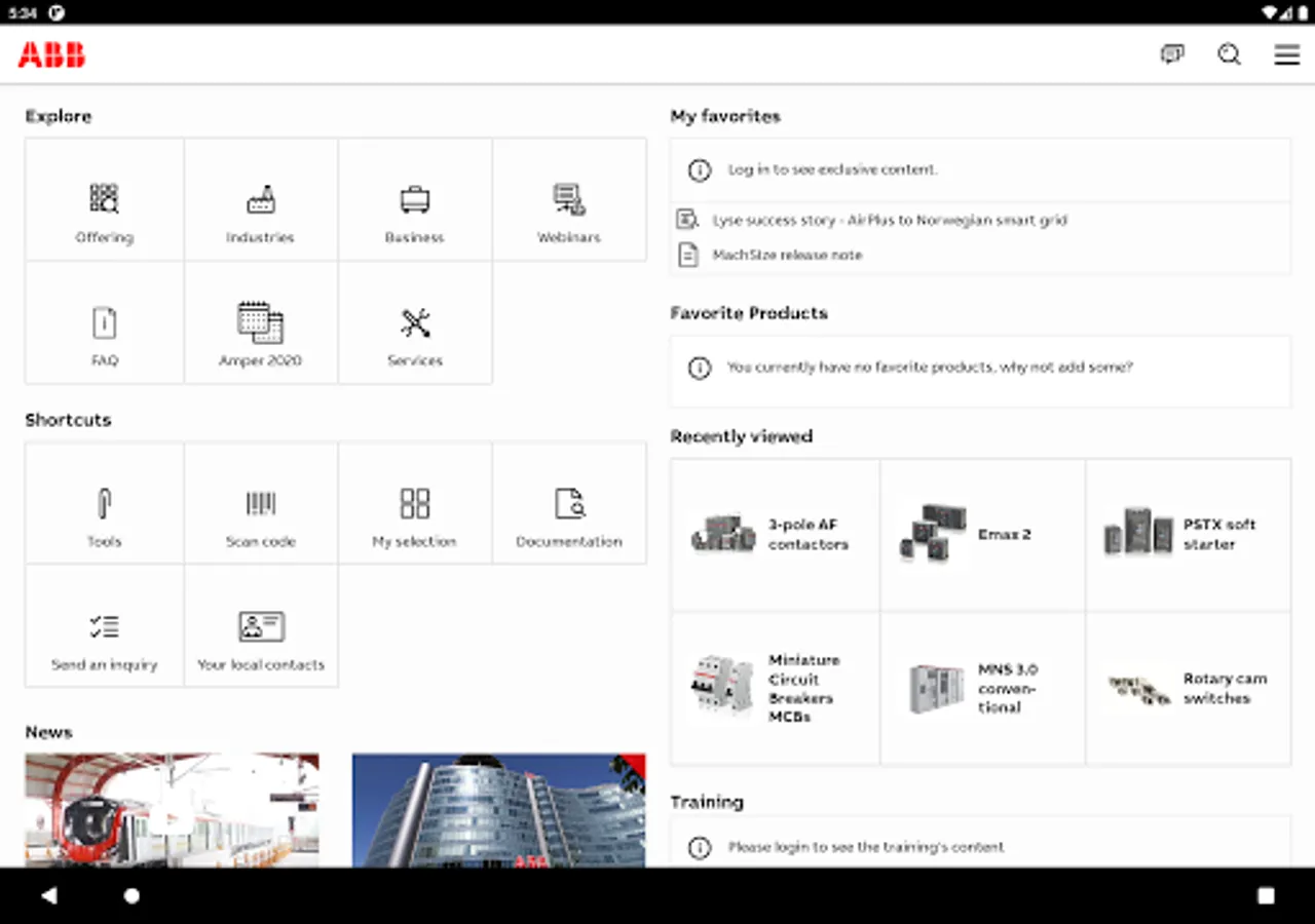 • Tap and stay connected. Keep the latest ABB insights at your fingertips with our News section.