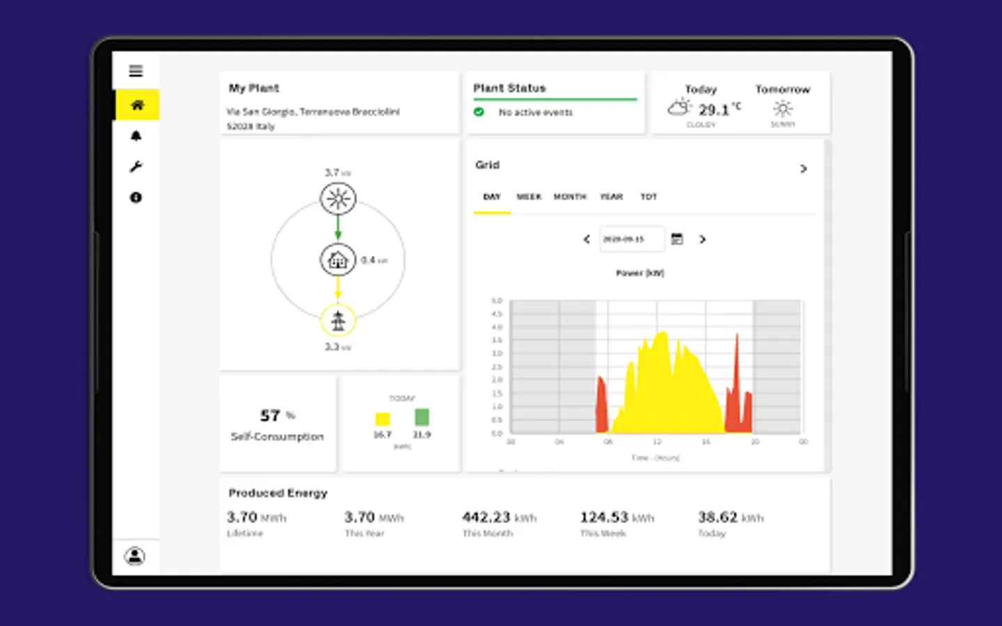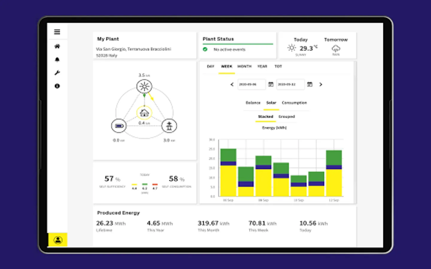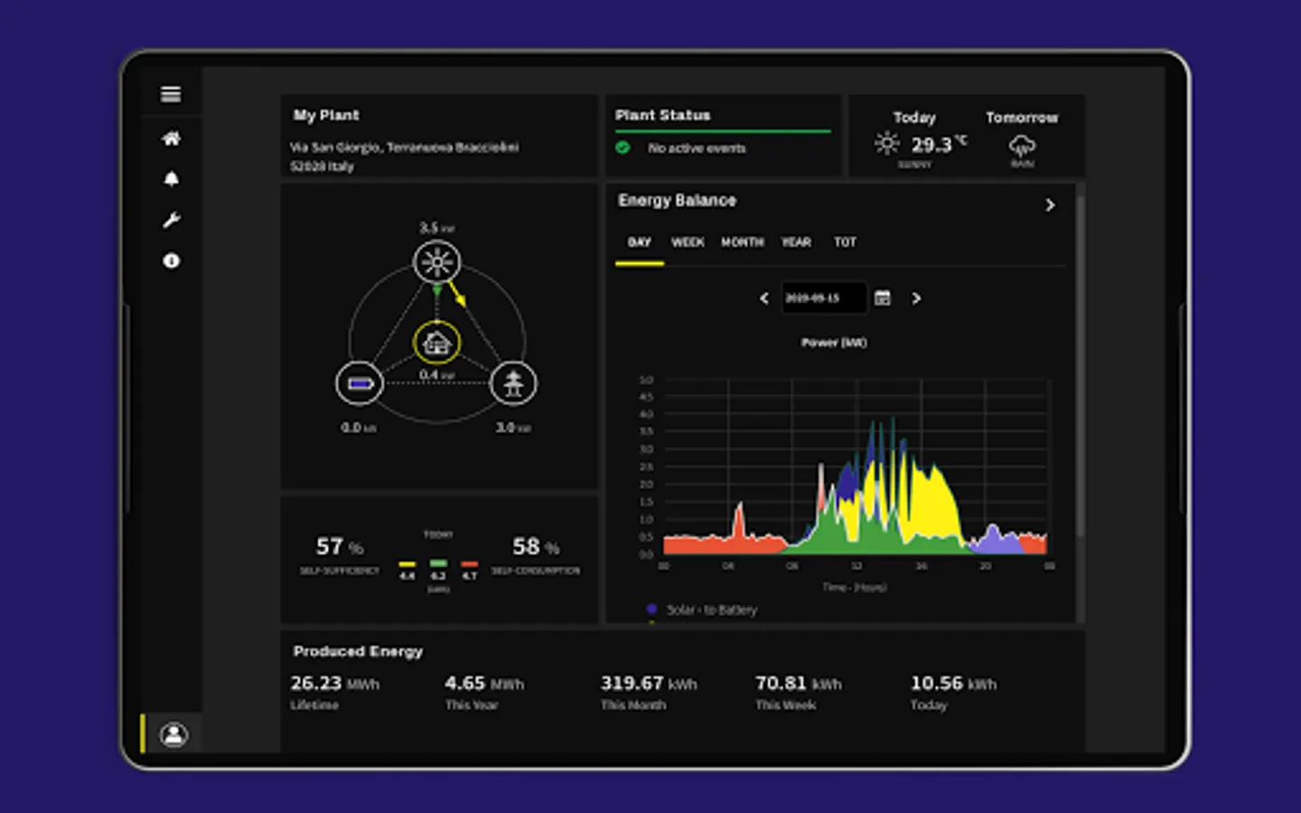 Energy Viewer allows solar power plant owners to remotely monitor system's output and home's consumption*, with or without an energy storage system installed, for all FIMER inverter(s).