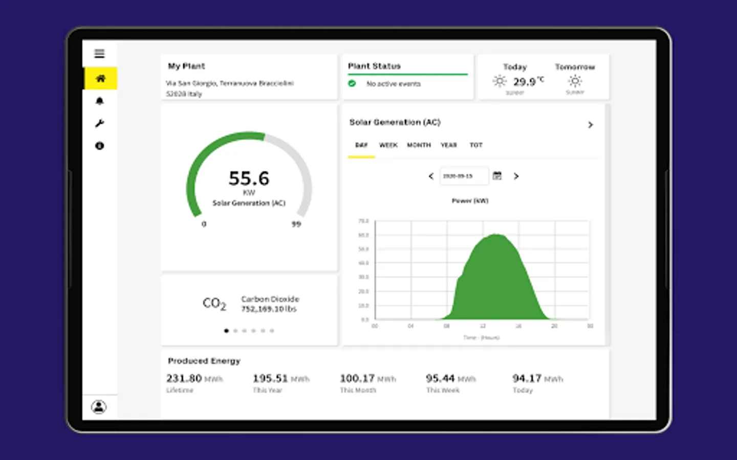 - Plant status in-App notifications, for monitoring active and closed events, and remote firmware updates;