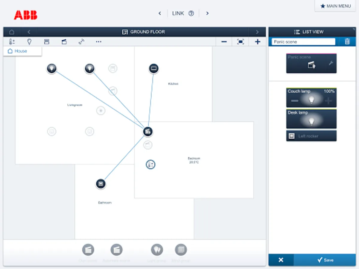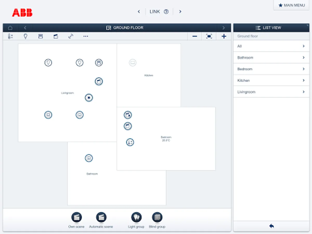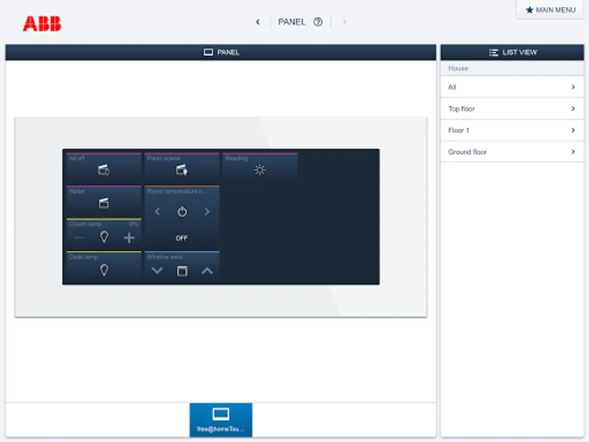 This Smart Home app makes it possible to configure and operate your free@home system. It transforms your house or your apartment into an intelligent companion. Whether blinds, lights, heating, air conditioning, door communication or light scenes. You can call up all functions individually - whether via switch, voice control or app from your smartphone and tablet. This allows you to conveniently operate your home from anywhere in the house or anywhere in the world. Most functions can be controlled through the Widget, not requiring to call up the free@home App. Local use and remote control via myABB Living Space is safe thanks to the best point-to-point encryption*, and so easy to establish! With your mobile devices you can now surf on the Internet and at the same time control your heating or the lights or simply check the status with the same device.