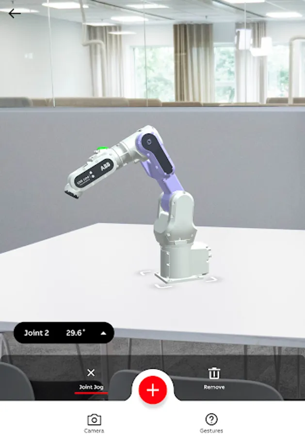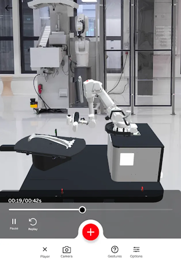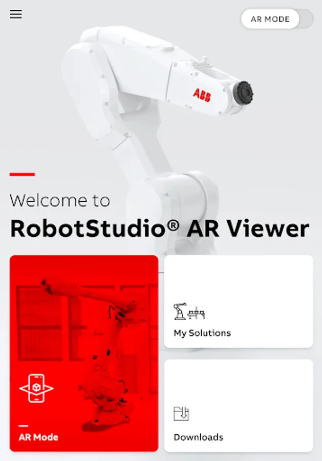 RobotStudio® AR Viewer is an Augmented Reality application for smartphones and tablets to discover and visualize in the real environment or in 3D, ABB robots and robotic solutions created in the RobotStudio® desktop app. With the RobotStudio AR Viewer app, you get an exact copy of the ABB robots and robotic solutions in real size and with the animation accurately reflected.