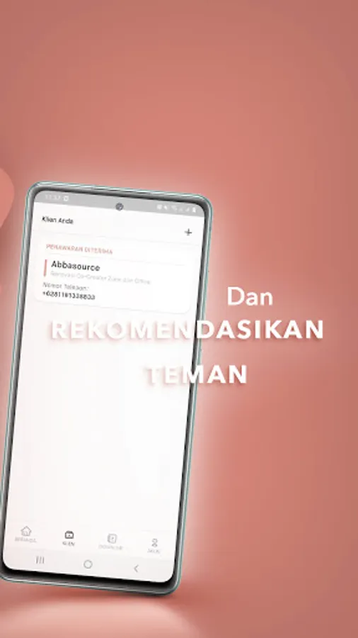 This application provides a registration feature as a member of Abbasource's sales partner, registers and monitors the sales process for clients, notifications related to client purchase transactions and also has a feature to register friends as referrals.