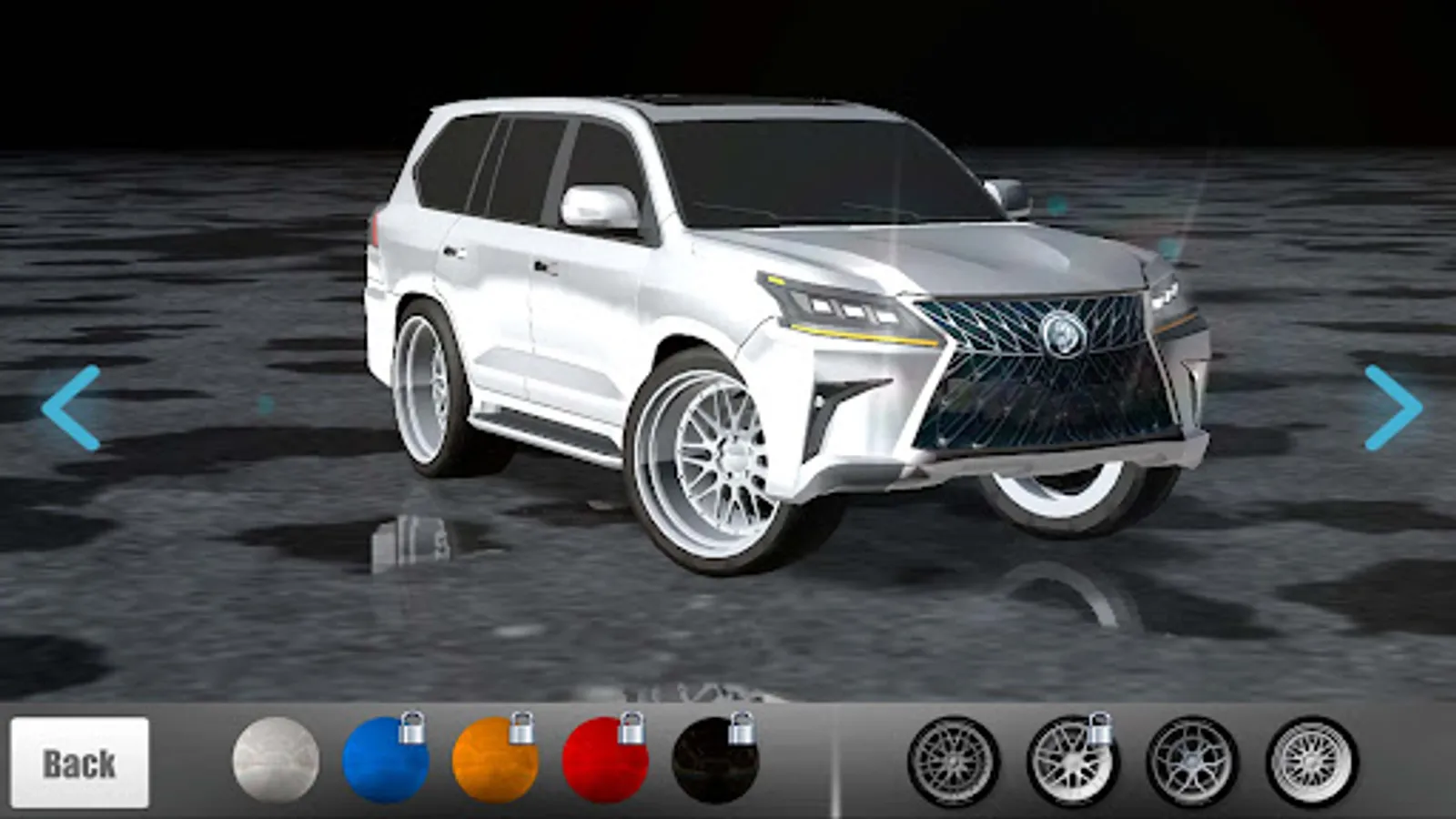 Driving simulator of a luxury LX 570 and GELIK G class SUV with the effects of real physics and damage effects.