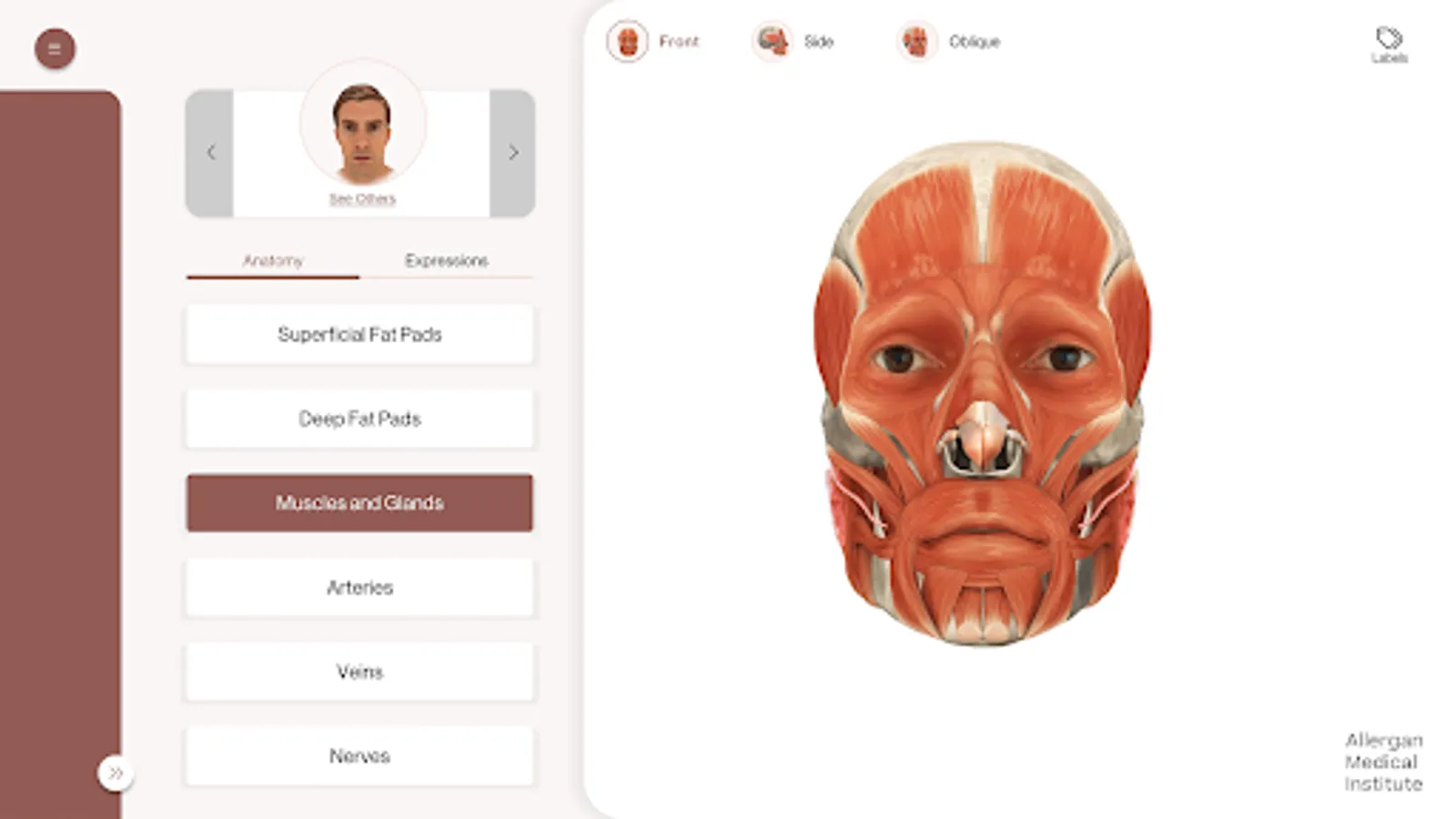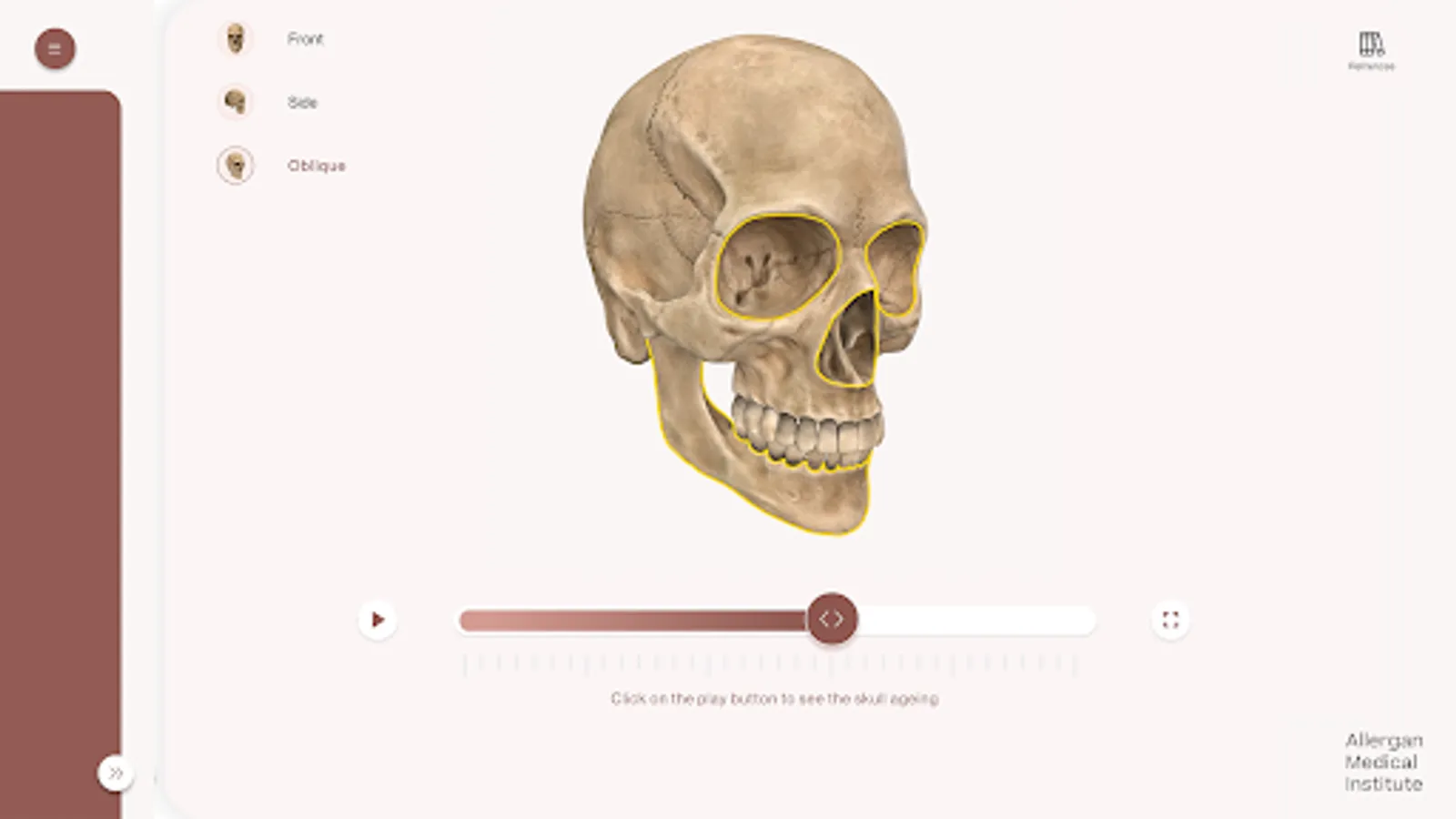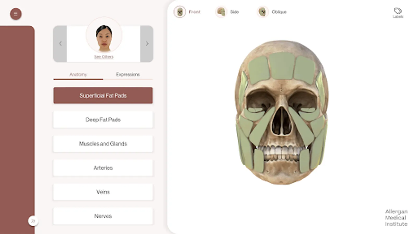 "This app is produced and funded by Allergan Aesthetics, an AbbVie company for UK heathcare professionals. This app has detailed information on facial anatomy and physiology to support discussions with the patient around the ageing process, facial changes, volume loss, and bony changes. This app is intended to be used on a tablet device with a camera.