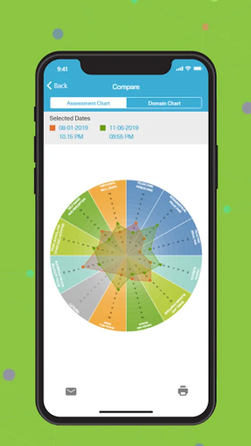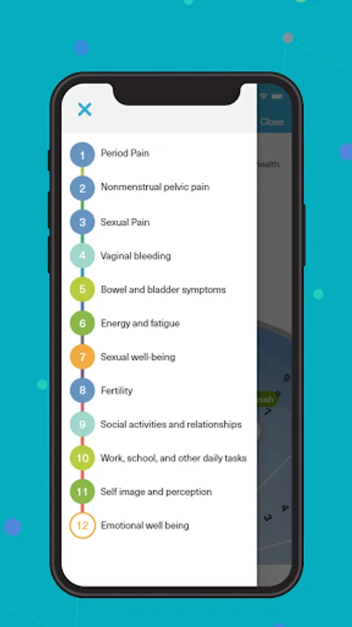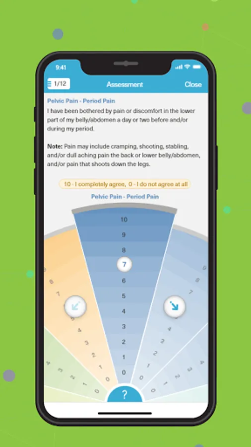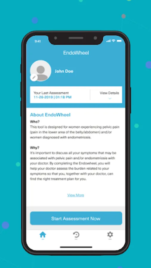 The EndoWheel tool is a self-administered mobile application designed for patients and their healthcare professionals to use to visually track symptoms and overall disease burden. Users can respond to symptom questions and results are displayed through a radar chart. Assessments are stored automatically (though they can be deleted by the user) to be used in historic comparison.