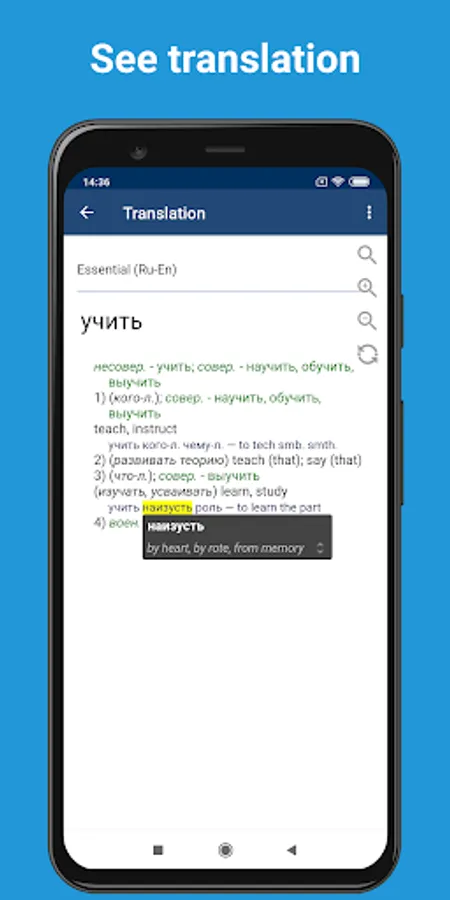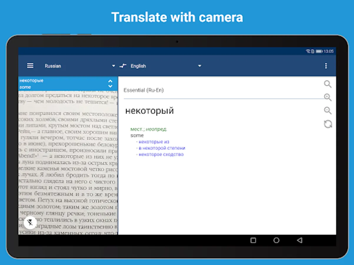 Work with two apps at once in split screen view: read the text in another app and translate unknown words without switching!