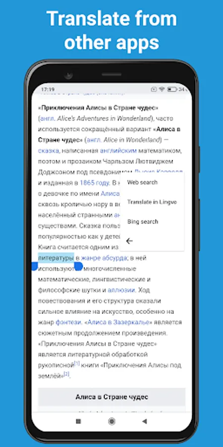 • Tap Translate in Lingvo in the menu (starting from Android 6.0)