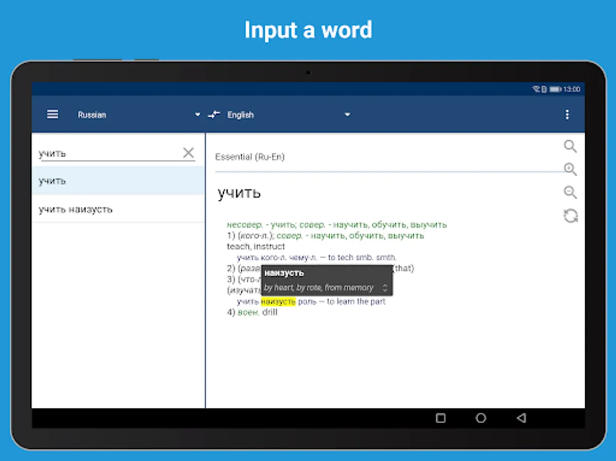 Free access to basic dictionaries for 6 languages included! Download them after installation right from within the app! Additional premium dictionaries for 8 languages including thematic, economic, law, etc. are available for In-App Purchase. Lingvo Dictionary works offline – it will become an indispensable tool for traveling, working or studying. The app helps to get a translation or an exhaustive interpretation of the word at any time.