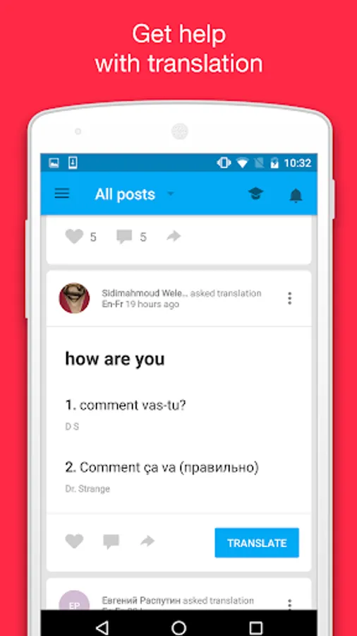 ✓ Communicate with other users, translators, language learners, ask their help in translation