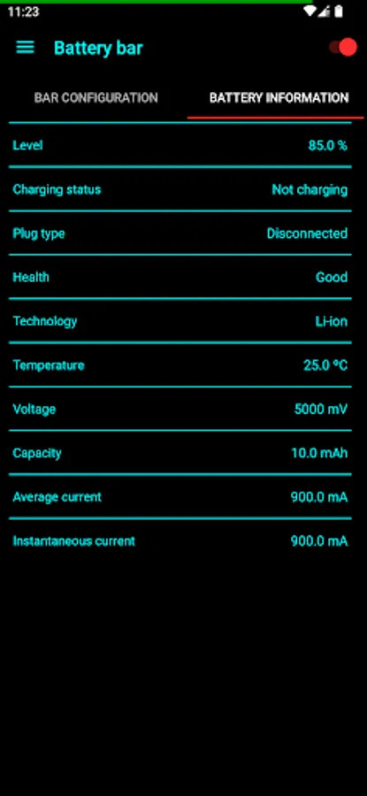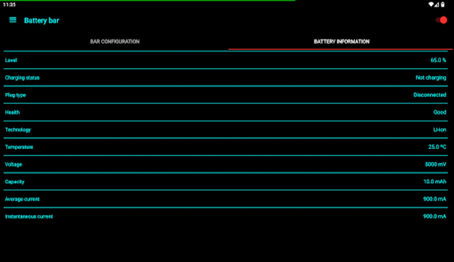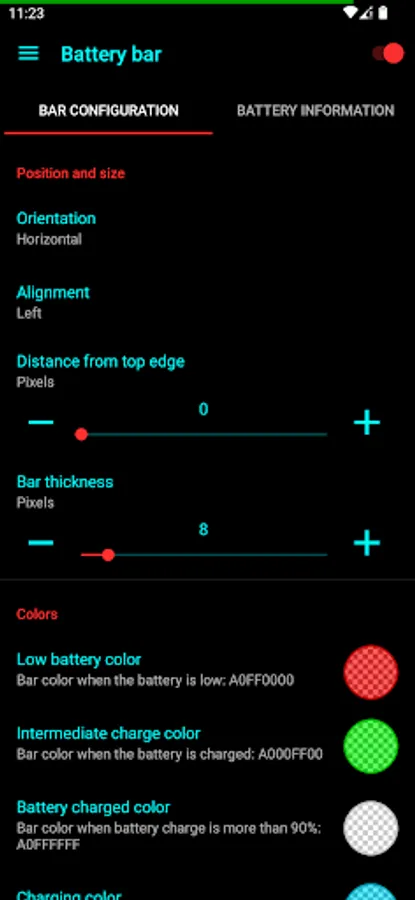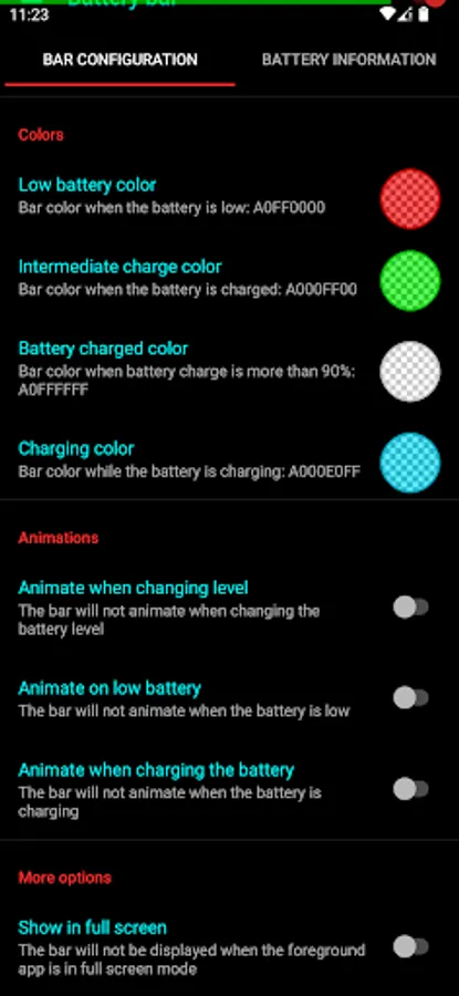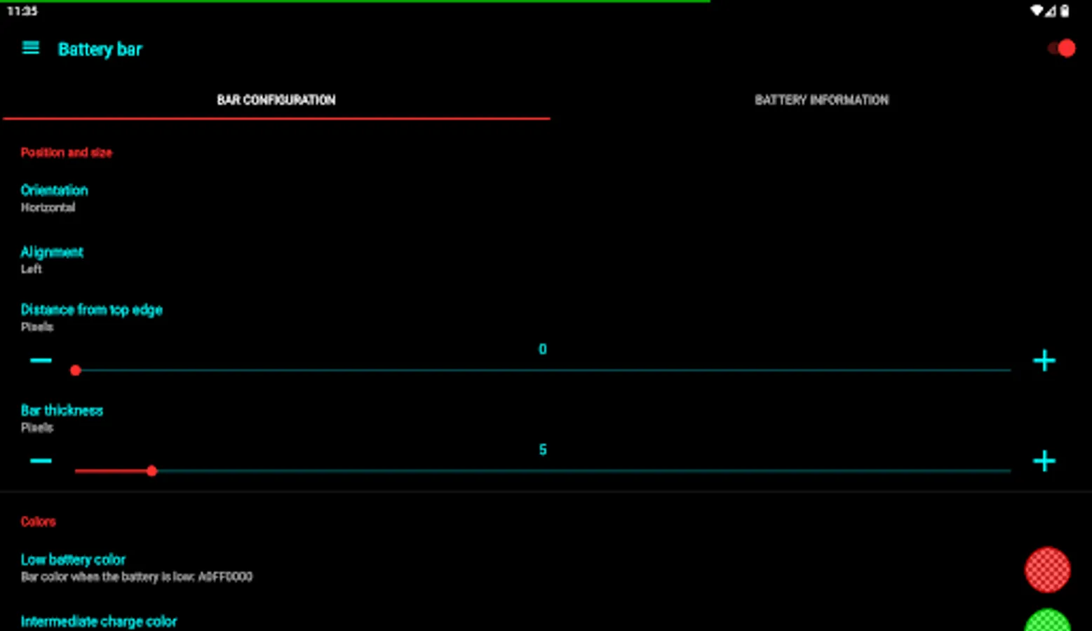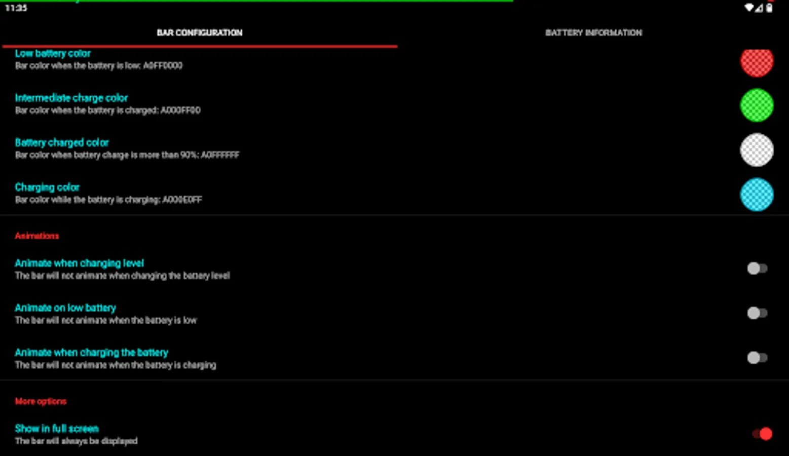 Battery Bar displays a bar with length proportional to the battery level of your device.