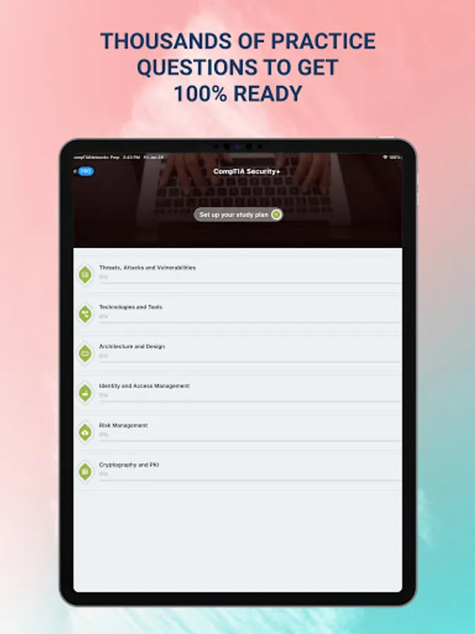 This app is organized to closely follow the actual CompTIA objectives for exam SY0-601. As such, it is easy to find the information required for each of the specified CompTIA Security+ objectives. The objective focus design used by this app is an important feature because the information you need to know is easily identifiable and accessible. There is a lot to know and our free practice tests for the Security+ Exam will help you find out where you need to work more and make the most of your study time.