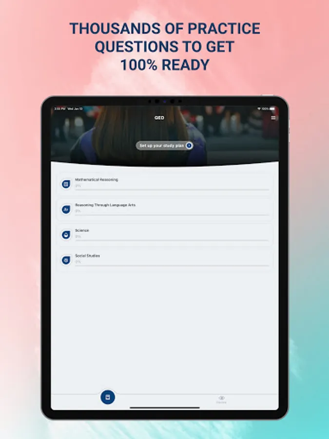 Don’t let the GED test stand in the way of your future! Our free practice test for the GED test can help you identify which areas you need to brush up on before test day. Whether you choose to study Mathematical Reasoning, Science, Social Studies, Reasoning Through Language Arts, or all four subjects, we’re here to help you prepare—and score big the first time!