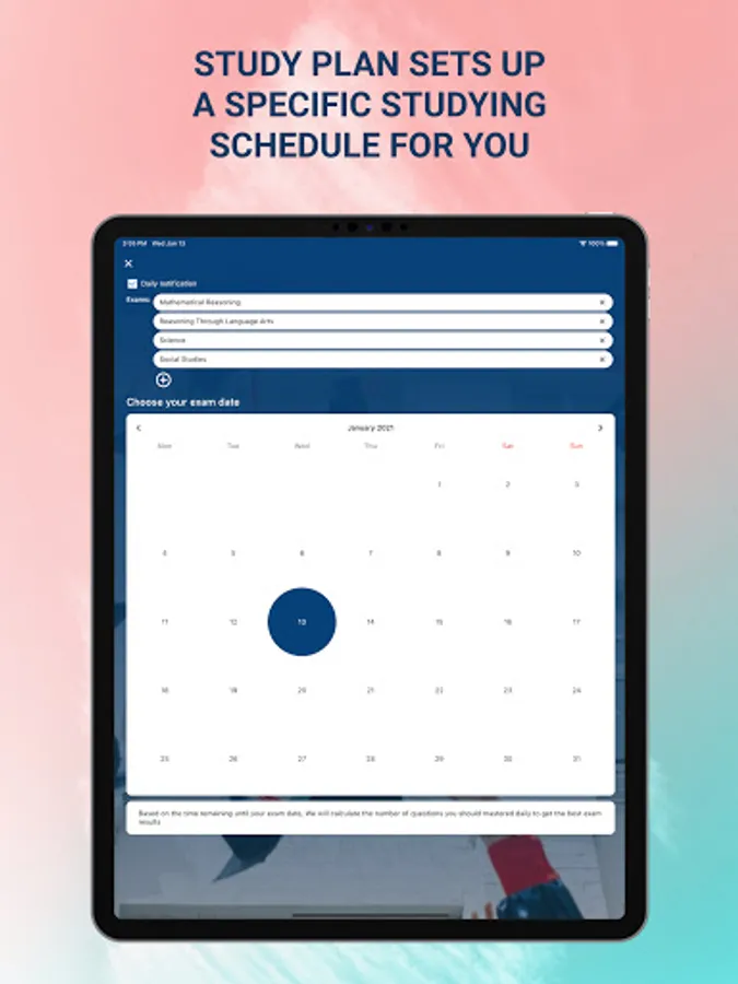 • Mock test: Various full tests let you familiarize yourself with test format. When you finish the test you will see your score and review all the questions.